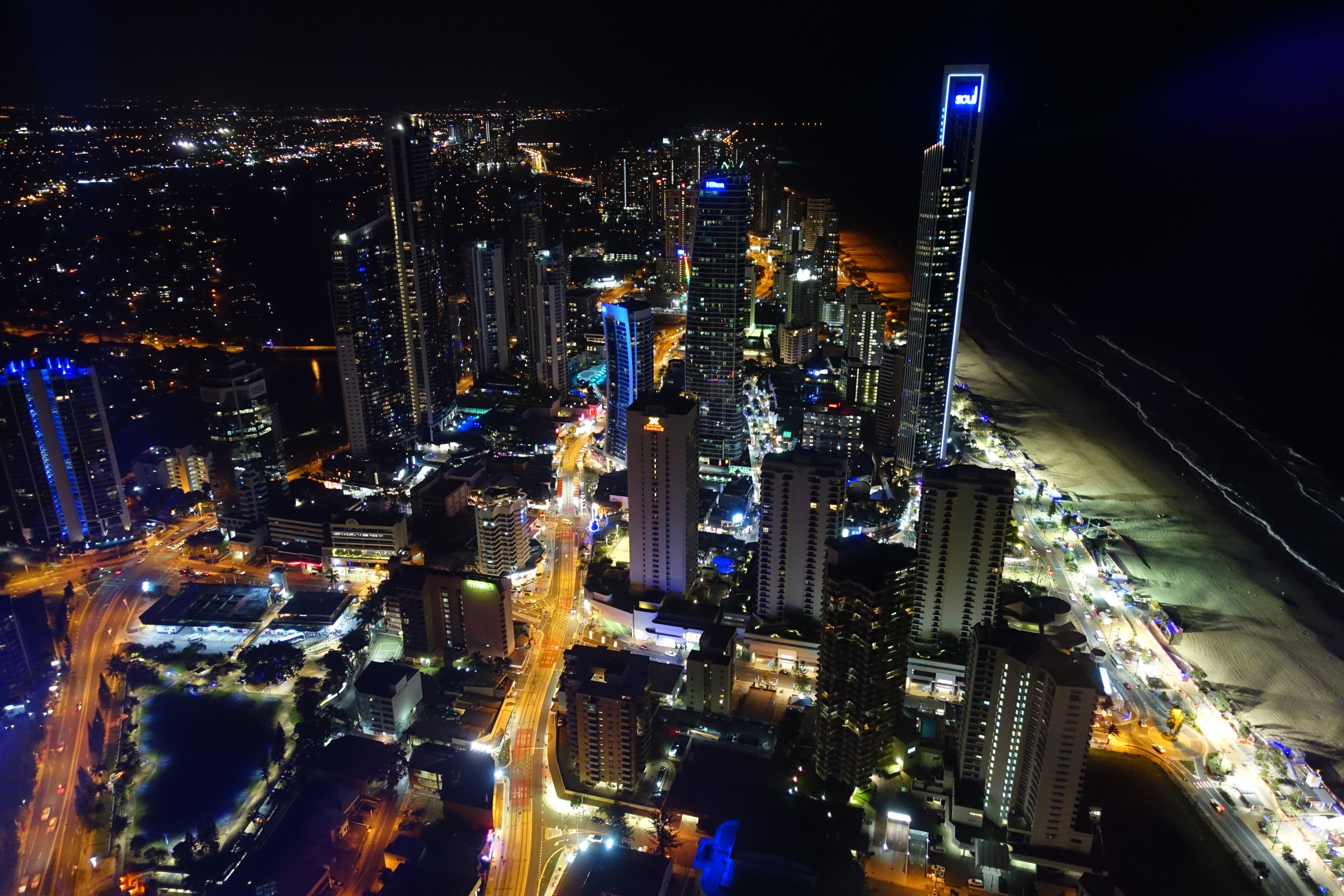 Ikväll åkte vi upp i Skypoint, en skyskrapa här i Surfers Paradise som ger en 360graders bild av staden, 230 meter upp! Fick några riktigt fina bilder med min nya kamera (kommer ett inlägg om den snart) över staden här när det är mörkt! Ska upp igen en annan dag när det är ljust ute så man får se staden mitt på dagen också.