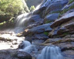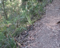 Igår åkte vi till Blue Mountains för att ta lite bilder på några vattenfall där. För att komma till dessa vattenfall så går man inne i skogen i en halvtimme kanske, för att sedan fortsätta gå dryg två timmar för att komma till nästa utkiksplats som vi skulle till. Fick massa bra bilder på vattenfallen, och sedan började vi gå vidare inne i regnskogen. När vi gått ytterligare en timme in i skogen så hörde jag något röra sig i busken bredvid oss, och där ser jag en 1,5-2 meter lång orm ringla sig fram!